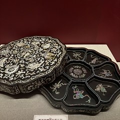黑漆嵌螺钿勾莲八宝纹葵式盒,清代,山西博物院藏