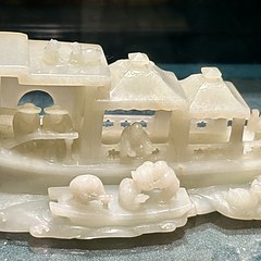 陈设玉器指用于摆设观赏的玉器,初见于战国、秦汉,宋辽金元时期开始盛行,明清达到鼎盛。这一类型器物题材广泛,涉及历史故事、民间传说、山水仙境、吉祥图案等,追求着一种绘画意境和笔墨情趣。