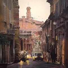 《夕阳下的马泰拉一》,纸本水彩,2018年
