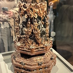 「吴塔国宝」突出展示了苏州两座标志性佛塔虎丘云岩寺塔和盘门瑞光寺塔内发现的国宝级佛教文物,分「宝藏虎丘:虎丘云岩寺塔佛教文物」和「塔放瑞光:瑞光寺塔佛教文物」南北两个展室,仿八角形砖塔的展室格局和主次分明的布局形式直观再现了文物保存原貌,充溢着庄严圣洁的宗教情怀。
