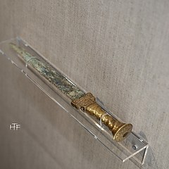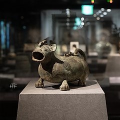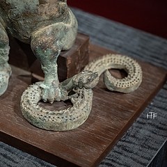 史博馆现有藏品逾6万件,以来自河南博物馆迁台文物及日本战后归还的文物为主。此次展览汇集多件被认定为「国宝」与「重要古物」的古代文物,包括蟠龙方壶、兽型器座、金柄铜短剑。