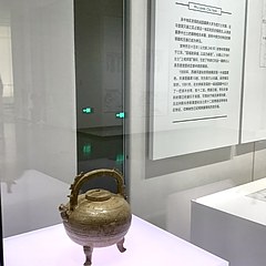 「秘色瓷」是本次展览着重阐述的文物品类,秘色瓷指越窑生产的高级青瓷,发端于中晚唐,繁盛于吴越国时期,不仅代表了当时陶瓷工艺的最高水平,也反映了吴越国社会的多方面信息。展览系统展出吴越国时期的秘色瓷精品,包括吴越国王钱镠生母水丘氏墓出土的秘色瓷褐彩云纹熏炉、秘色瓷褐彩云纹油灯和秘色瓷褐彩云纹盖罂等3件国家一级文物。