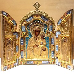 第三部分「日常的奢华」展出了赞颂杯、鱼子酱碗、伞柄等御用物品;第四部分「信仰的力量」展出了《全能的基督》、《艾弗斯卡亚圣母》等东正教宗教文物。