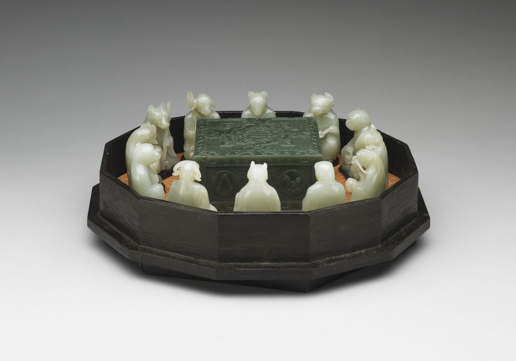 展览汇集87件(套)展品,包括新石器时代玉猪龙、明代龙九子墨、清乾隆紫檀万年甲子多宝盒等,通过「龙生九子」「十二生肖」等与龙相关典故,展现龙与历史、权力的多重连结。最后一单元「龙与当代文化」由法方策划,通过漫画及当代艺术作品,呈现「龙」在现代流行文化中的解读。