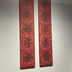 从雍正帝开始,每年元旦于养心殿明窗第一次开笔必写「吉语」字,每次开笔必使用「金瓯永固」杯和「玉烛长调」烛台,此后成为清帝每年春节的祈福活动之一。金玉清供、挂屏、餐具等为新春佳节增添了浓浓的喜庆气氛,也表达了对万事如意、福岁绵长的美好憧憬。