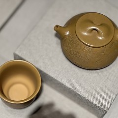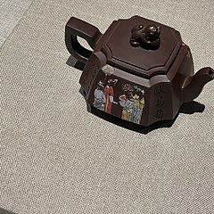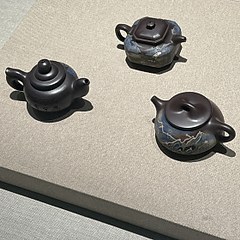 参观者还可以欣赏到画家们在紫砂壶上挥毫的创作。从明末起,许多文人墨客参与到紫砂茶具创作中,让日用器变成诗、书、画、印俱全,富含意趣审美的载体。