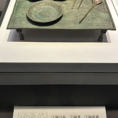 兽蹄足铜案、铜钵、铜耳杯、铜箸、铜勺、铜碟,汉代