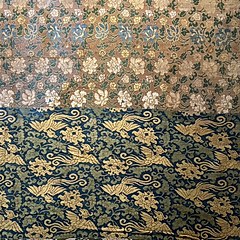 褐色地鸾凤串枝牡丹莲纹锦被面