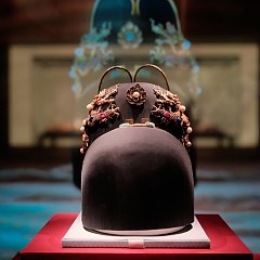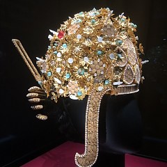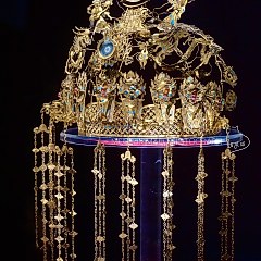 鎏金点翠嵌宝「诰命」龙凤冠,清代