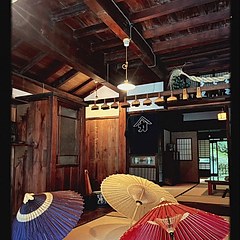 东区主要建筑为江户时代的「天明家」,这栋房屋建于江户时代后期,是当时的地主天明一家生活的居所。主屋正面屋顶饰有「千鸟破风」,书房前还建有枯山水庭园,凸显天明家在当地的地位。