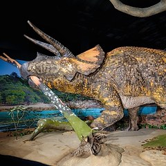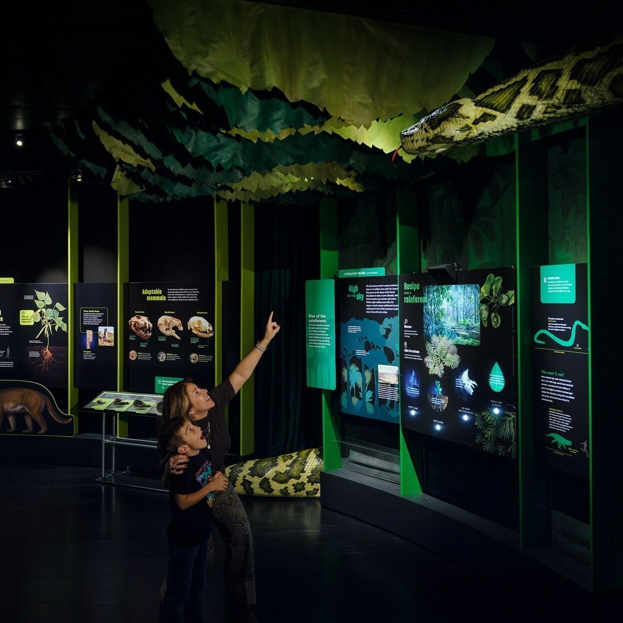 展览前半部分通过立体场景模型展现美国西部的远古生态,带领观众穿越时空回到白垩纪时期,感受恐龙漫步大地、翼龙翱翔天空、沧龙和蛇颈龙称霸海洋的世界。
