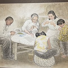 第二部分为「传承创变」,二十世纪七八十年代,中国实行改革开放。随着西方现代艺术的传入,艺术家们开始重新解读历史、现实和传统,并尝试从具有生活气息的现实情境出发进行创作。展品包括郭全忠《万语千言》、王有政《捏扁食》等。