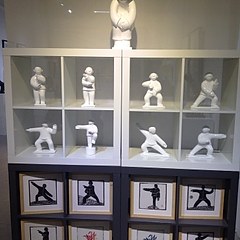 朱子千擅长制造矛盾和荒谬,此次个展展出了他的《书架与举重运动员》、《操场》、《俯卧撑》等作品以及创作过程中的草图。
