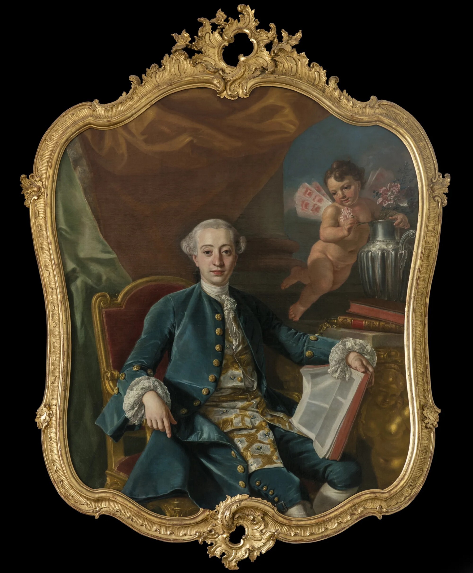 《30岁或35岁卡萨诺瓦肖像》(Presumed portrait of Giacomo Casanova at the age of 30 or 35),Francesco Maria Narice,约1755-1760年,布面油画