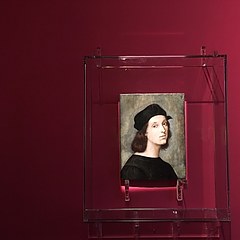 展出作品中包括4件达·芬奇(Leonardo da Vinci)和米开朗基罗(Michelangelo)的作品,如达·芬奇的《自画像》、米开朗基罗的雕塑《磨刀者》等;以及4件拉斐尔(Raphel)的画作,如《自画像》、《圣母子像》、《圣凯瑟琳的神秘婚礼》等。