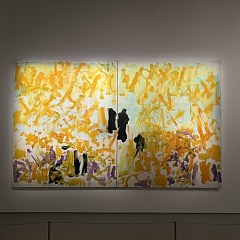 两位艺术家的创作均以全身投入的大幅绘画为特征:米切尔充满动势的笔触与鲁尼在绘画中展示出的身体动态(比如手印),揭示了她们与其作品的亲密联结。鲁尼对色彩和姿势的运用与其对行为艺术的兴趣,模糊了绘画、装置与现场行动之间的边界,创造了一种沉浸式体验;而米切尔的风景则通过色彩与质感激发了观者的强烈情感反应。