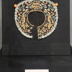 第二单元「生活美学」展示翡翠如意挂坠、金镶白玉耳环、提花镶滚袄、双龙纹银手镯等民间用品,体现清代民间的审美取向、工艺水平与生活情趣。展品还包含诸多西南少数民族银饰,见证各民族独特的银饰文化。