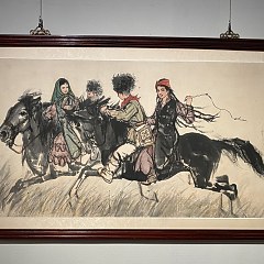 为纪念中国人民抗日战争暨世界反法西斯战争胜利80周年,中国人民对外友好协会与中国美术馆合作举办本次展览,共展出近80件作品,涵盖中国画、油画、雕塑、版画等多个艺术门类,创作时间跨越百余年,体现中外艺术家在不同文化视野下对和平主题的共同表达。展览标题源自1955年曾亮相赫尔辛基世界和平大会的巨幅国画作品《和平颂》。该画由齐白石、陈半丁、何香凝、于非闇等14位画家集体创作,长398厘米、高201厘米,画面以15只白鸽为核心意象,搭配松柏、牡丹、翠竹等元素,营造出和谐美好的画面氛围,以此展现中国人民对和平的热爱以及对外友好交往的美好愿景。