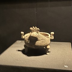本展览重点呈现了新干大墓出土的2件青铜大钺。钺是王权的象征,商代同一墓葬出土成对青铜大钺的,只有河南安阳殷墟的商王武丁之妻「妇好」墓、山东益都苏埠屯的某方国国王「亚醜」墓。类比可知,新干大墓的墓主应该是赣水流域某方国的国王。