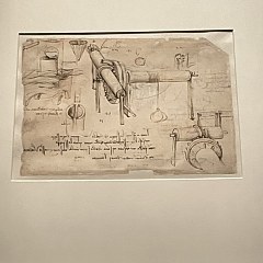 《大西洋古抄本》是现存达·芬奇手稿集册中规模最大的一部,涵盖1478年至1519年间创作的1119页手稿内容,内容涉及军事器械、水利工程、机械设计、数学研究、飞行器构想等跨学科领域,让后人得以一窥这位「百科全书式」天才的头脑。值得一提的是,本次展览遴选展出的这2页手稿为首次在日本展出。