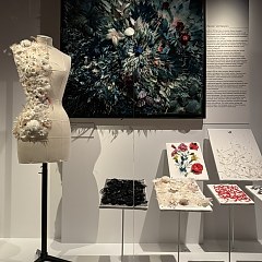 展览以花为核心主题,探索时尚装饰工艺,即编织、刺绣、染色、印花、蕾丝、饰带等服装和配饰技艺如何随时尚发展,如何形塑巴黎的优雅。