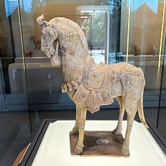 「俑载威仪」单元重点呈现魏晋南北朝至隋唐的陶马。这一时期马匹既是战备物资,也是连接丝绸之路的重要媒介,唐代流行的随葬陶马俑,则是墓主人社会身份的直接体现。