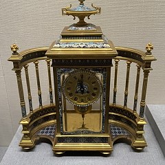 铜镀金嵌珐琅水钻八柱围屏式钟,产自法国
