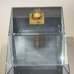 「守疆营土」聚焦秦末将领赵佗在岭南建立的南越国,回顾历代南越统治者在岭南政治、经济、文化、民族融合和海外交流等各方面做出的贡献;「万里同风」介绍汉武帝灭南越国后,将岭南地区正式纳入汉朝郡县的版图,此后岭南在政治、经济、文化等各方面与中央王朝渐趋融合。上海博物馆特别为本次展览借展了一枚「赵佗」铜印。这枚印章为秦代和西汉早期常见私印形式,鼻钮,印面为阴文,自左而右横向排列。此印据称出自西安,原为清代学者吴大澂的旧藏,吴大澂认为是南越明王赵婴齐担任汉武帝宿卫时将印章带到西安。