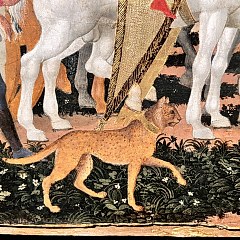 Pesellino 擅长描绘建筑和动物,用图画讲故事,在小尺寸的画布上表现复杂的细节。他在35岁英年早逝,迄今他工作室留下的许多画作存在署名争议,导致其艺术遗产被后世长期忽视。