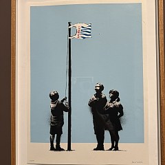 班克斯是当代最具影响力的涂鸦艺术家之一,其真实身份迄今未知。他的街头涂鸦作品多采用模板拓印的方式,题材涉及气候危机、反消费主义、儿童福利、动物权利等社会议题。