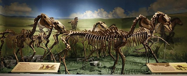 本次展览共呈现展品40余件,涵盖动物化石、仿真动物模型、动物化石模型、马蹄印模型等。展览选取了从始新世开始各个时期最具代表性的马类物种重点介绍,剖析马类演化进程,融合古生物学、地质学及传统文化研究,从科学与文化两个维度讲述马的故事。