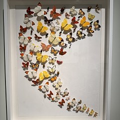 本次展览共呈现数百件蝴蝶幼虫、蛹、成虫标本,通过「蝴蝶的一生」「独特的身体」「自然的一员」三个版块解读蝴蝶的奥秘。展厅内还特别设置相对封闭空间「蝴蝶屋」,展示蛹化蝶过程和多品种蝴蝶觅食、繁衍的状态。