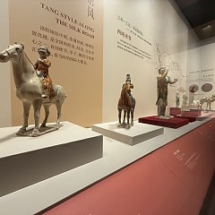 展览分为四个单元,「东都洛阳」呈现出土自洛阳宫城遗址的文物,再现唐代洛阳城宫阙林立、街市如棋的恢宏景象;「盛世和晏」聚焦大唐多元包容的社会生活画卷,展品包括陶俑、唐三彩、金银茶具等。