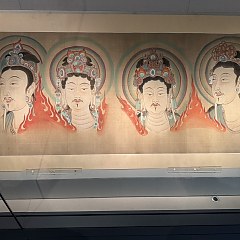 「我与敦煌」聚焦四川博物院藏张大千临摹的敦煌壁画盛唐飞天图、盛唐菩萨头像和晚唐十一面观音像图等。「敦煌之后」展示张大千敦煌求艺后转变风格的作品,这些作品不仅线条勾勒遒劲奔放,也更加注重视觉效果上的装饰性,广泛使用复笔重彩,物象庄严华美,雍容大气。