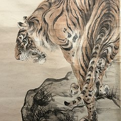 《猛虎啸落日图》轴,张善孖绘,张大千题,1931年