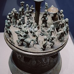 叠鼓形狩猎场面铜贮贝器,西汉,云南昆明晋宁石寨山71号墓出土,云南省博物馆藏
