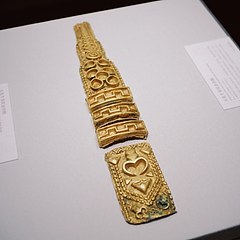 二人盘舞鎏金铜扣饰,西汉,云南昆明晋宁石寨山13号墓出土,云南省博物馆藏