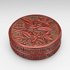 张成款剔红栀子花纹圆盒,元末明初,旧金山亚洲艺术博物馆藏