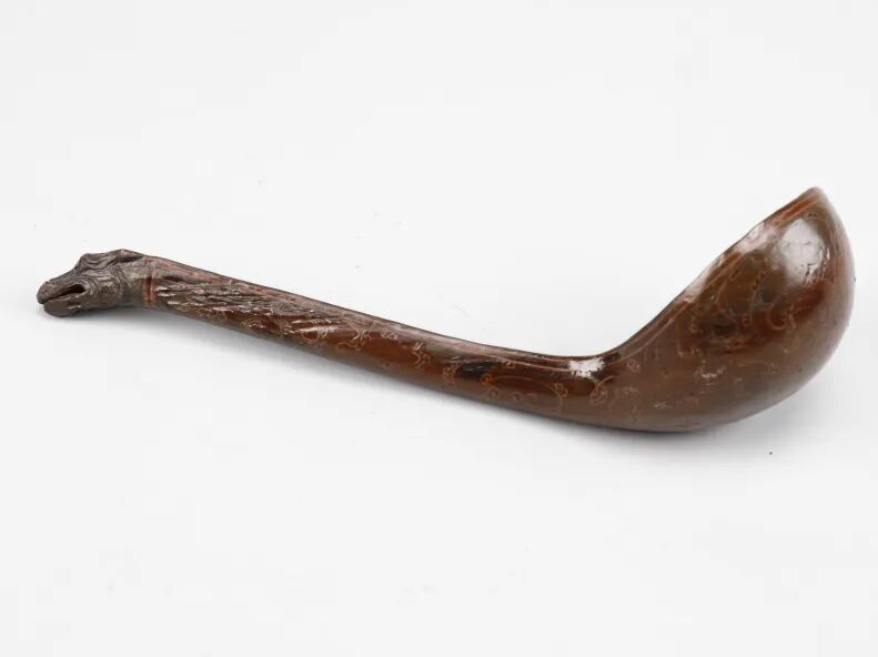 彩绘云气纹马头形漆勺,西汉,扬州博物馆藏
