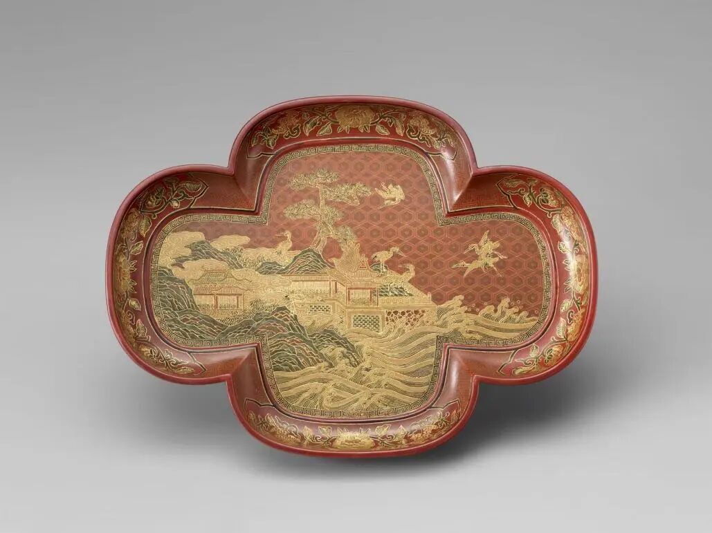 乾隆款朱漆戗金填彩海棠仙盘,清乾隆,旧金山亚洲艺术博物馆藏