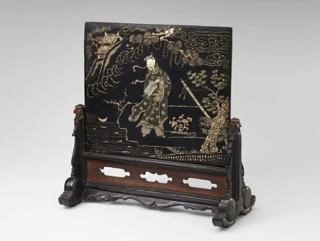 黑漆螺钿吕洞宾仙人图座屏,元代,旧金山亚洲艺术博物馆藏