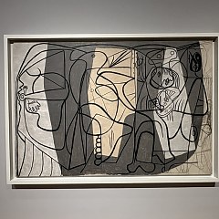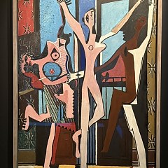 《三名舞者》被认为是现代艺术史上的里程碑之作。这幅画作绘制于1925年,标志着毕加索从古典主义时期到表现主义时期的关键转变。画家用支离破碎的躯体隐喻人物身份的瓦解,以富有情绪张力的扭曲和变形处理手法,表达欢乐与痛苦并存的矛盾情绪,引导观众站在疯狂、哲学与先锋思潮交汇的十字路口,体会现代艺术迎来的新变革。