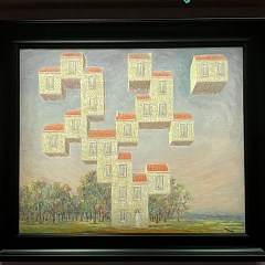 勒内·马格里特的作品以荒诞、冷漠的现实主义风格为主,反映出极具独立性的艺术视野和带有叛逆色彩的幽默感,云朵、帽子、烟斗和苹果是他作品中最具代表性的元素。