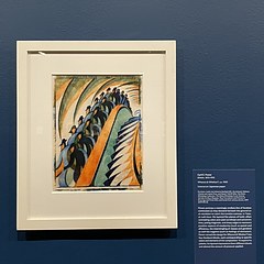 1913-1939年,英国格罗夫纳现代艺术学校、未来主义和漩涡主义画派的艺术家积极投身版画创作,使用各种传统版画制作技术,并尝试「油毡浮雕」等新方法,通过作品表达当代生活中的破灭、混乱、生机和革新。