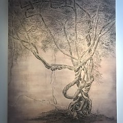 绘画部分以绞胎、古藤与盆景为主题。「绞胎」是人为制造,花纹是自然的幻化与表现,可以视为人与造物者的共同创作。古藤与盆景充满苏州的气息,从近处的文藤、远在太湖西山的野藤,再到罗马朱丽叶皇宫的老藤,姿态各异,但给人似曾相识之感。