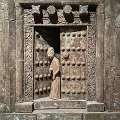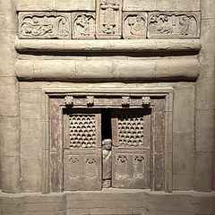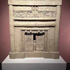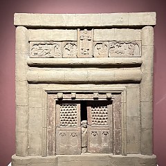 山西宋金墓葬中多以仿木砖雕构件呈现木构建筑的视觉效果,营造出一座座富丽堂皇的地下宅邸;建筑环境和家居生活主要通过砖雕或彩绘表现,既是对地上家宅的模仿,也是未来世界的再造。启门图像是家宅主题墓葬壁画的重要题材,因启门之人多为女子形象,故称之为「妇人启门图」。