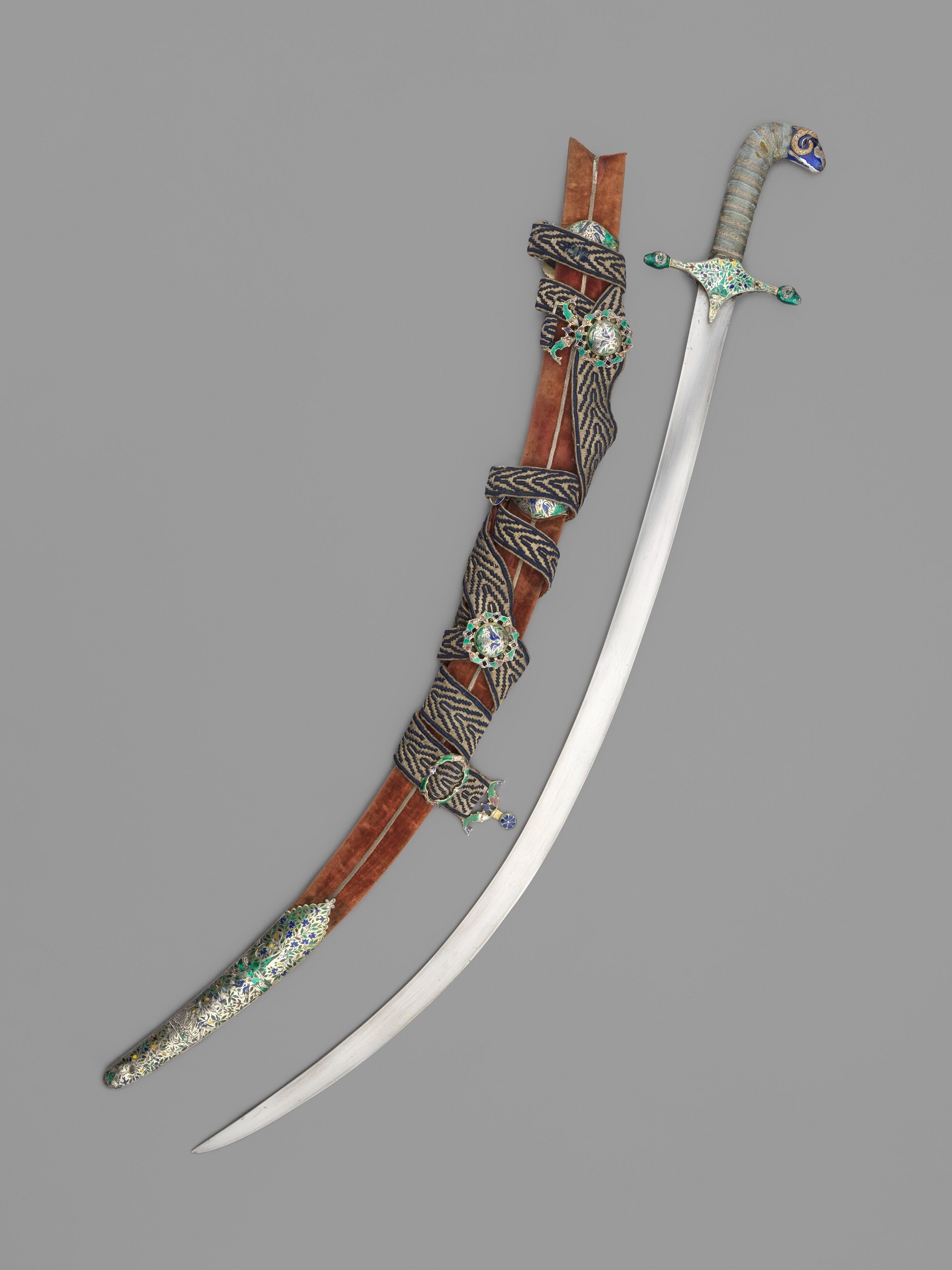 本次展览主要展示19世纪下半叶华莱士收藏馆创始人 Richard Wallace 爵士从拍卖会和交易商手中购入的5柄勒克瑙宫廷仪仗剑,每柄剑长度近1米,饰以珐琅和金银工艺,反映印度历史上阿瓦德王国繁盛时期的工艺水平。