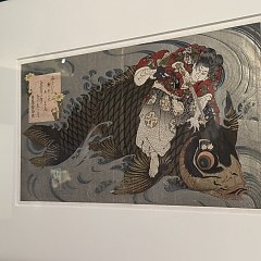 第三个展厅致敬日本浮世绘大师葛饰北斋,展出其代表作《神奈川冲浪里》,同时展出法国/比利时漫画中的《神奈川冲浪里》元素。