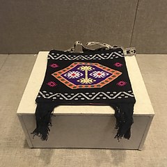 西兰卡普有超过200种流传至今的织锦纹样,卍字纹是最常见的一种,往往与福字纹、寿字纹、喜字纹、土字纹、田字纹等搭配使用。「卍」字纹在佛教文化中象征太阳,寓意吉祥,多用于吉庆喜事中,如陪嫁织锦、婴儿满月的被褥和衣帽鞋袜。
