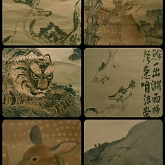 百兽与人类生活关系紧密,从野生猛兽到农耕打猎的伙伴,从外域番邦的珍奇物种到神话传说中的祥瑞象征,古人将自己对动物的敬畏、喜爱、好奇、寄托付诸笔墨,在中国传统绘画中独成「走兽」一科。「百兽率舞」单元呈现的重要作品有宋陈居中《四羊图》、元任仁发《二马图》、清郎世宁《万吉骦图》、华嵒《百兽图》等。